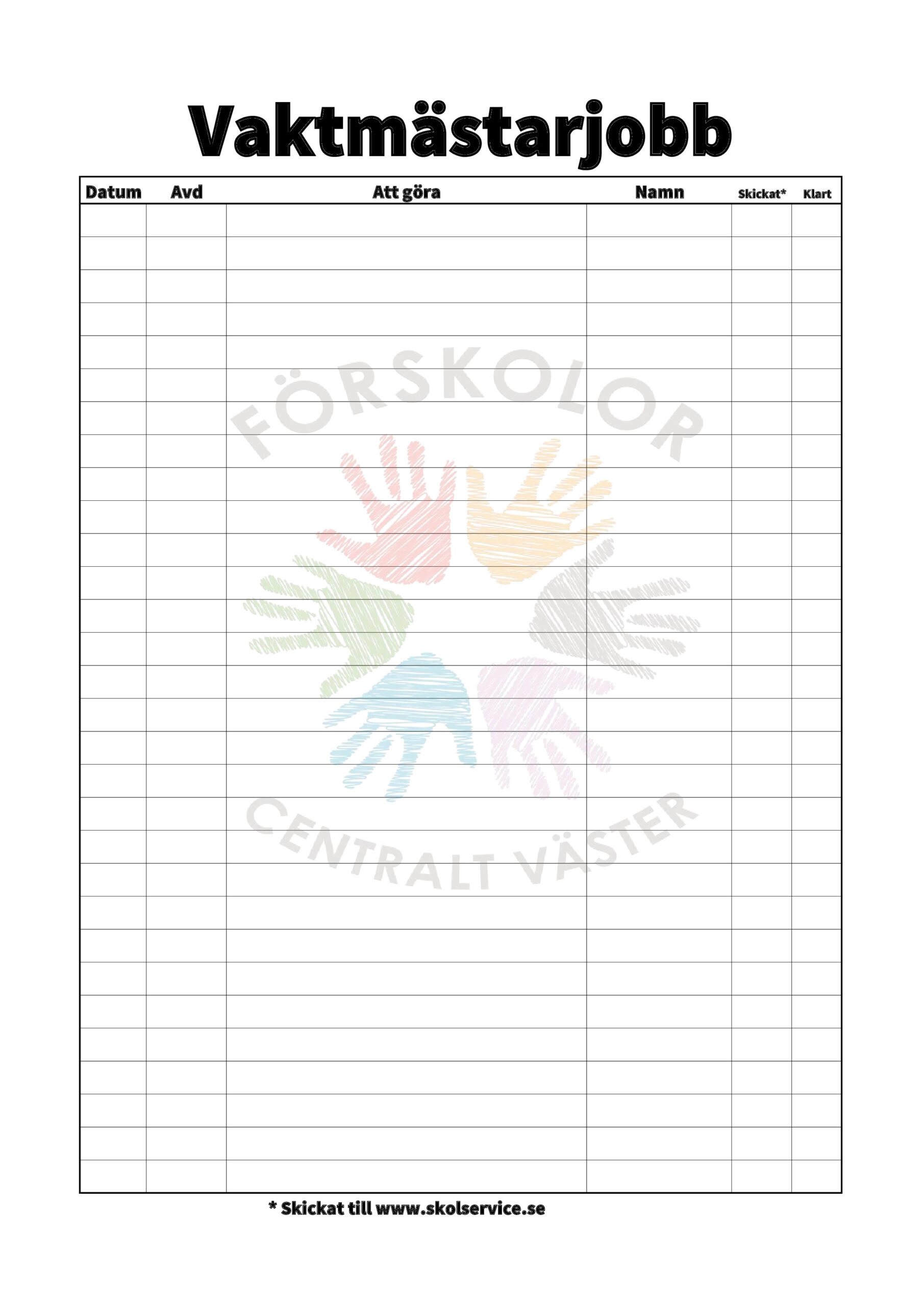 Ladda ned och printa ”vaktmästarlista”.